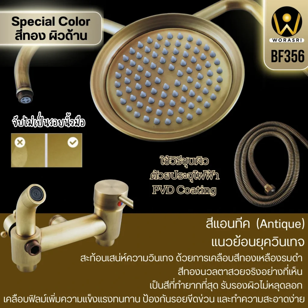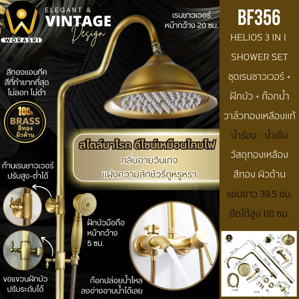 อยากได้ฟีลอาบน้ำแบบโรงแรม แค่มีชุดเรนชาวเวอร์ก็เปลี่ยนบ้านให้เป็นโรงแรมแล้วค่ะ มีให้เลือก 3 สีเลยนะคะ สีทองผิวด้าน รุ่น BF357, สีดำผิวด้าน รุ่น BF362 และสีเทาดำผิวด้าน รุ่น BF363 แอดมินมีวิธีติดตั้งชุดเรนชาวเวอร์ทั้ง 3 รุ่นให้ดูทั้งแบบรูปภาพและคลิปวีดีโอเลยนะคะ แค่ 3 ขั้นตอนก็ติดตั้งได้แล้วค่ะ ง่ายๆ จริงๆ นะคะ