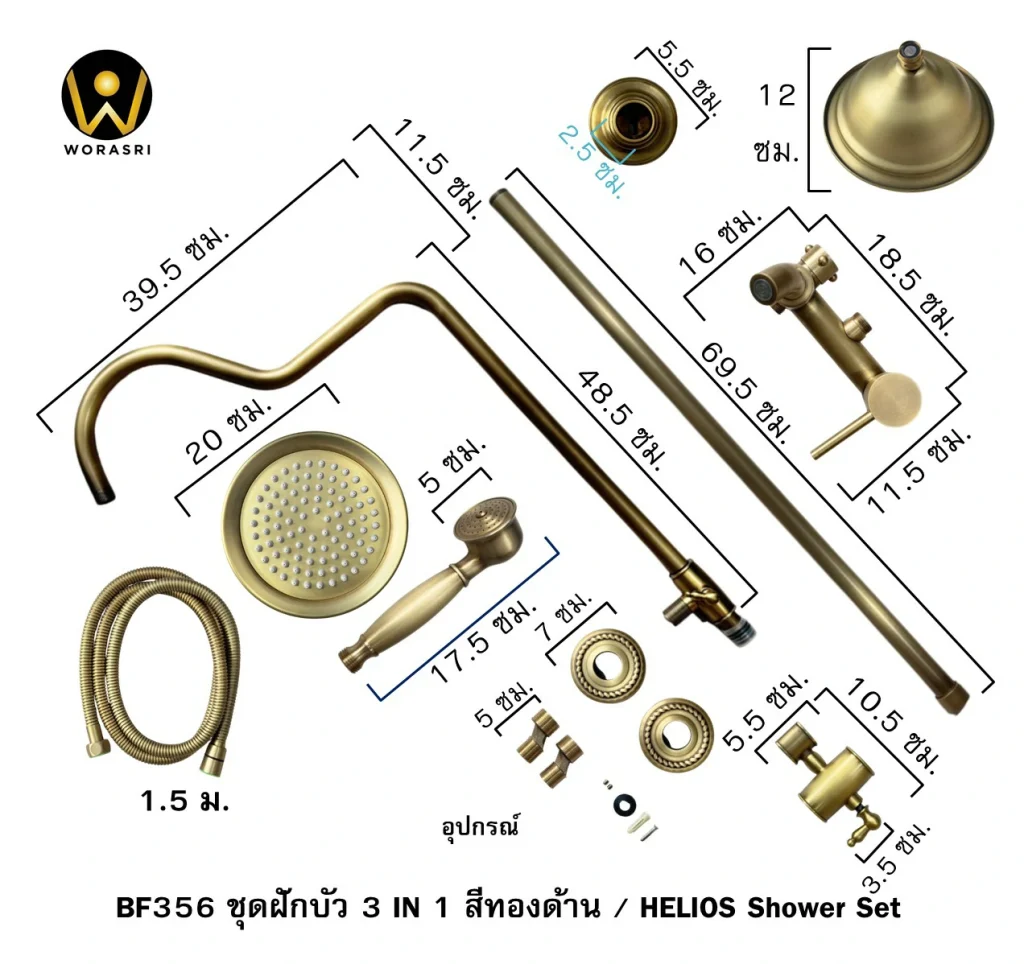 - ขนาดสายน้ำดีฝักบัว ยาว 150 ซม. จำนวน 1 เส้น