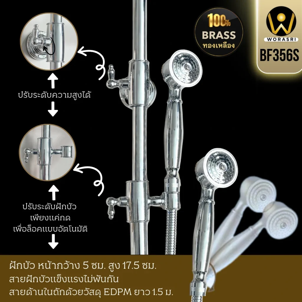 - แขวนฝักบัวได้สะดวก : แขวนฝักบัวอาบน้ำช่วยให้คุณปรับระดับได้อย่างยืดหยุ่น สามารถตั้งตำแหน่งให้เหมาะสมกับความต้องการของแต่ละคนได้อย่างสะดวกสบาย