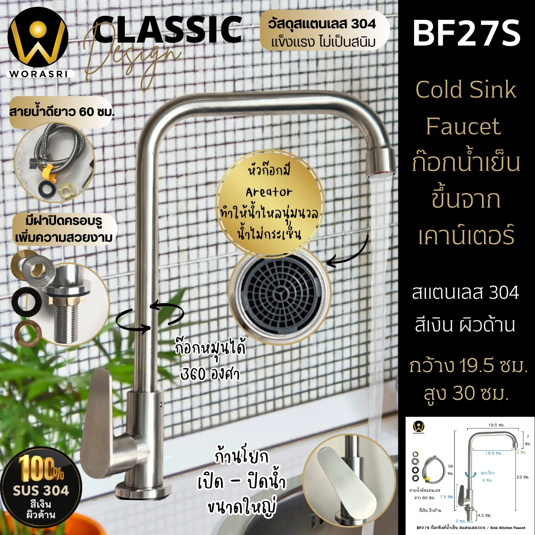 รายละเอียดสินค้า ก๊อกซิงค์น้ำเย็นเคาน์เตอร์ BF27S