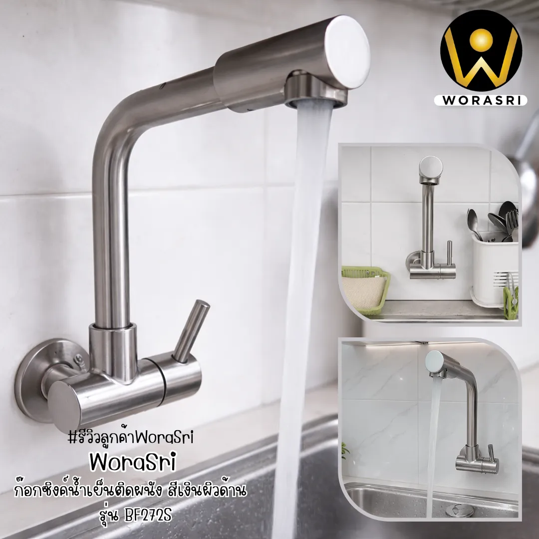 - ประหยัดพื้นที่: การติดตั้งบนผนังจะช่วยเพิ่มพื้นที่บนขอบอ่างล้างจาน ทำให้มีที่สำหรับวางของใช้ในครัวหรือทำงานอื่นๆ ได้มากขึ้น