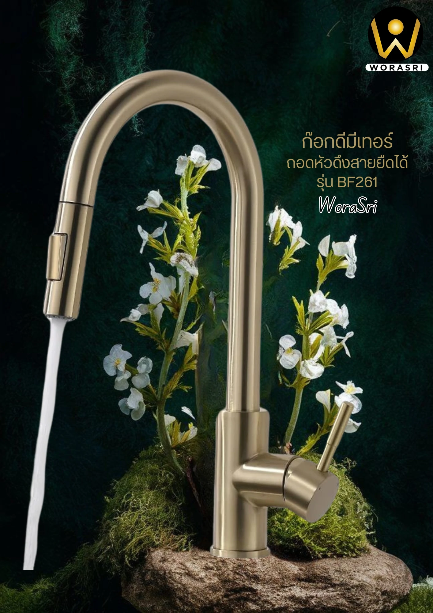 คุณสมบัติเด่น ก๊อกซิงค์ผสมอ่างล้างจานดึงหัวก๊อกยืดสายออกได้สีทองด้าน BF261 – BF262 ดียังไง