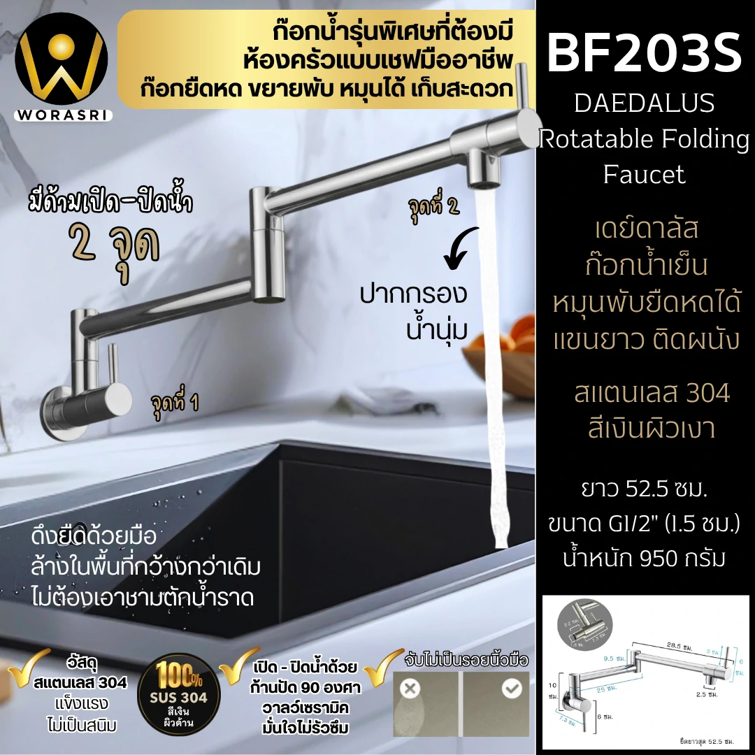 คุณสมบัติเด่น ก๊อกซิงค์หมุนพับยืดหดได้ติดผนัง BF203S ดียังไง