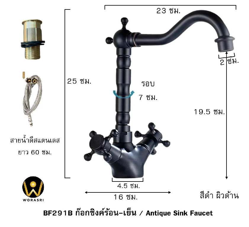 - รูปลักษณ์ดีไซน์โดดเด่นสไตล์วินเทจแฝงกลิ่นอายย้อนยุคหน่อยๆ มองแล้วคลาสสิคสุดๆ ด้วยหัวก๊อกทรงโค้งสูงรูปตัว L และดีไซน์ที่เปิด-ปิดน้ำที่เป็นเอกลักษณ์ ให้ความรู้สึกสวยงามเหมือนเทพนิยาย ช่วยเพิ่มสไตล์การตกแต่งห้องครัวและห้องน้ำ ให้โดดเด่นและน่าใช้งานมากยิ่งขึ้น