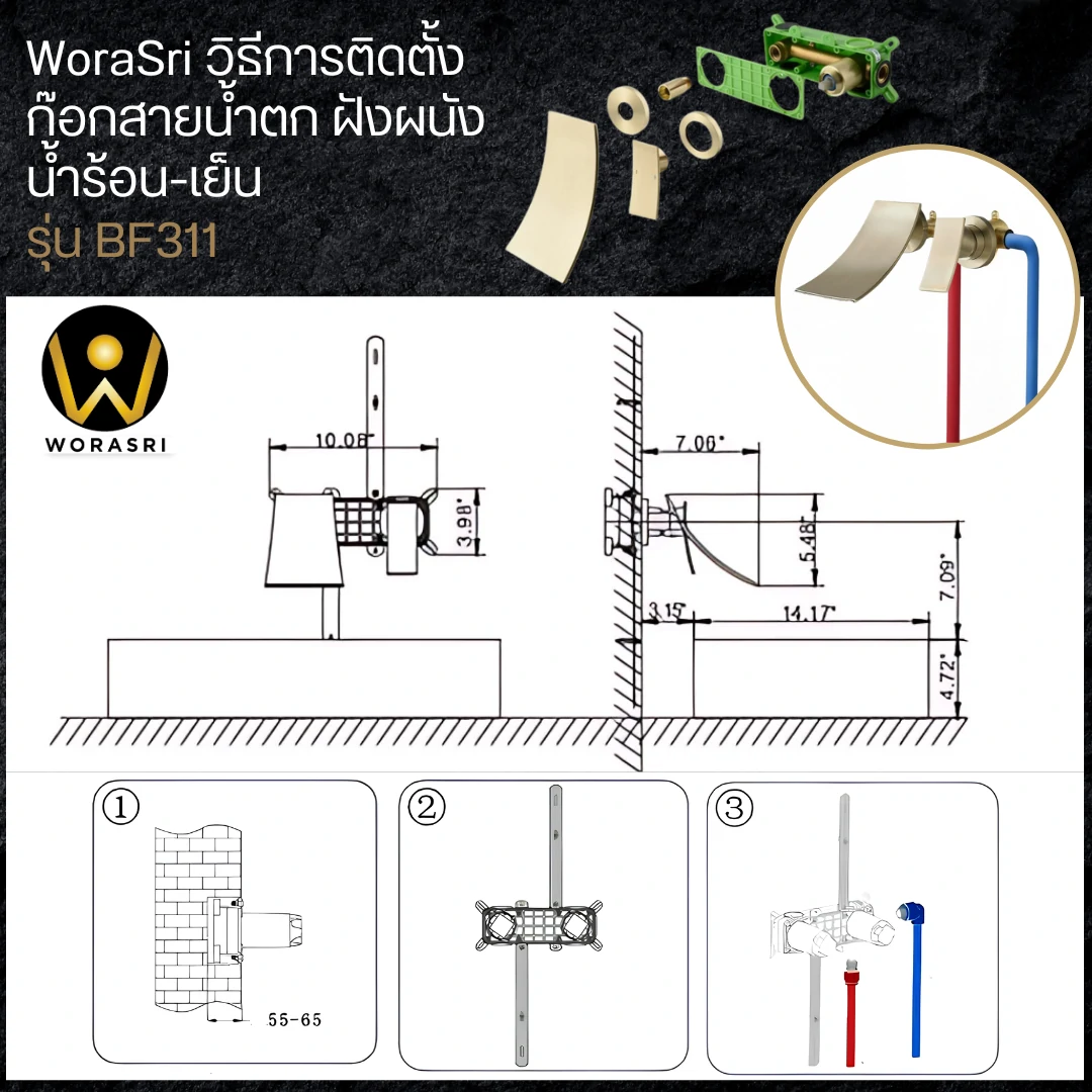 รายละเอียดสินค้า ก๊อกอ่างล้างหน้าแบบฝังผนังผสมน้ำร้อน-เย็น รุ่น BF311