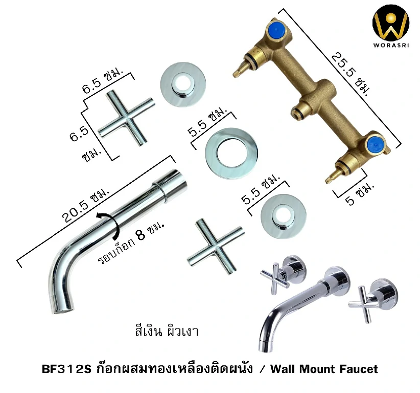 - ขนาดก๊อกยื่นออกจากผนัง 19.5 ซม.