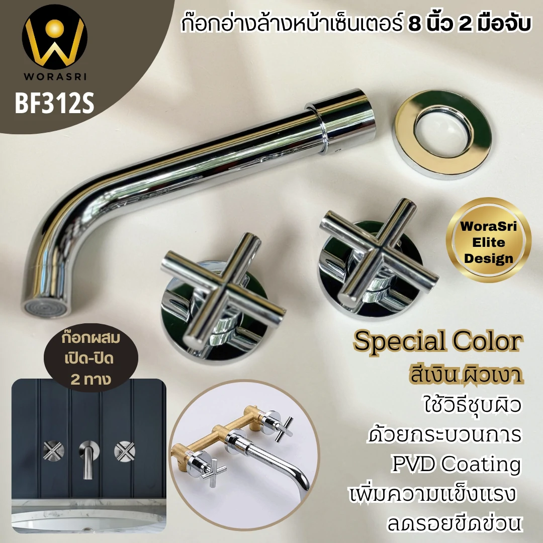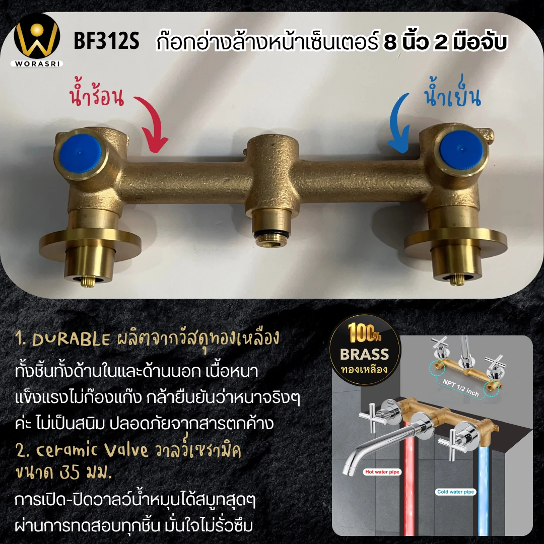 คุณสมบัติเด่น ก๊อกอ่างล้างหน้าเซ็นเตอร์ 8 นิ้ว 2 มือจับ สีทองผิวด้าน รุ่น BF312 ดียังไง