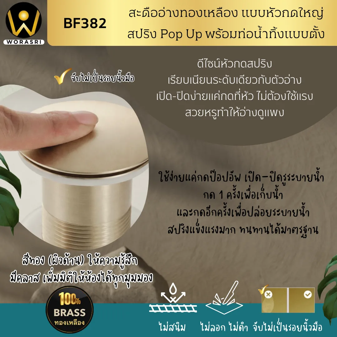 คุณสมบัติเด่น สะดืออ่างทองเหลืองแบบกดหัวใหญ่ไม่มีรูน้ำล้นp รุ่น BF381 และ BF382 ดียังไง