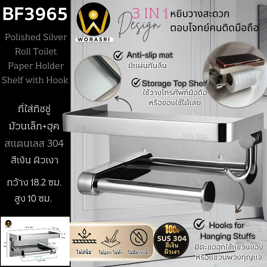 รายละเอียดสินค้า ที่ใส่ทิชชู่ม้วนเล็กพร้อมชั้นวางมือถือ รุ่น BF3965